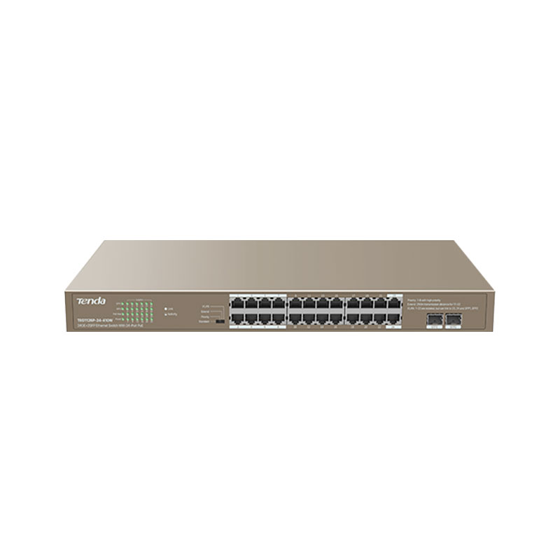 سوییچ شبکه TENDA TEG1126P-24-410W یک دستگاه مدیریتی برای شبکههای کوچک و متوسط است که دارای ۲۴ پورت اترنت با قابلیت POE (Power over Ethernet) میباشد. این سوییچ امکان تأمین برق و انتقال داده همزمان برای دوربینهای مداربسته، تلفنهای تحت شبکه و سایر دستگاههای POE را فراهم میکند.