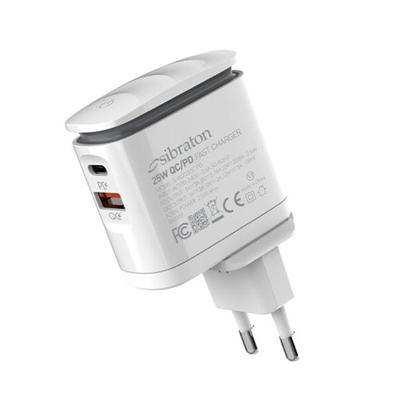 شارژر دیواری سیبراتون مدل Sibraton S-W2225C-PD 25W یک آداپتور جمعوجور و کاربردی است که برای شارژ سریع و ایمن دستگاههای مختلف طراحی شده است.