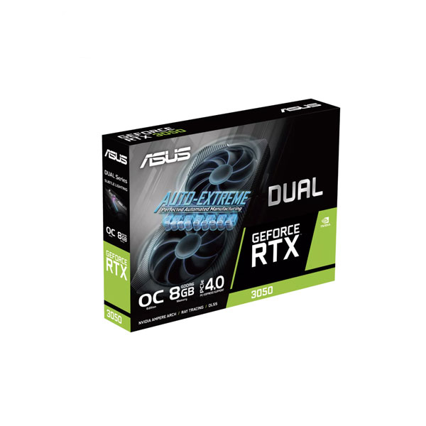 اگر می‌خواهید از سیستم کامپیوتری خود بازده خوب و کاملا قابل قبولی را دریافت کنید، باید قطعات قدرتمند‌ و مناسبی را در کنار هم جمع کنید. یکی از اصلی‌ترین قطعات سخت‌افزاری برای ارائه عملکردی مناسب، کارت گرافیک است. ایسوس در این زمینه بدون هیچ تعریف اضافی، توانسته است عملکرد خوب و کاملا قابل قبولی را به‌نمایش بگذارد. ابعاد بسیار مناسب و جمع‌و‌جور این کارت گرافیک سبب شده تا فضای چندان زیادی را به خود اختصاص ندهد. دو فن در نظر گرفته شده برای این کارت گرافیک، عملکرد بسیار خوبی در کنترل دما دارد. فن‌های در نظر گرفته شده از فناوری Axial بهره برده‌اند که در حداکثر رساندن جریان هوا به هیت سینک‌ها تاثیر بسیار بالایی دارند و همین امر سبب خواهد شد تا در ترافیک کاری بالا از بالا رفتن دما جلوگیری شود و در نهایت عملکرد بهتری را شاهد خواهید بود. با توجه به حضور RTX 3050 باید بدانید که این کارت گرافیک توانایی ارائه عملکرد کاملا قابل قبولی را در اجرای بازی‌ها و نرم‌افزار‌های کاربردی سنگین دارد. کارت‌ گرافیک Dual GeForce RTX 3050 OC Edition 8GB توانایی پشتیبانی از چهار نمایشگر بصورت همزمان را هم دارد. کانکتور برق 8 پین در نظر گرفته شده برای این کارت گرافیک هم وظیفه تامین انرژی را بر عهده دارد.